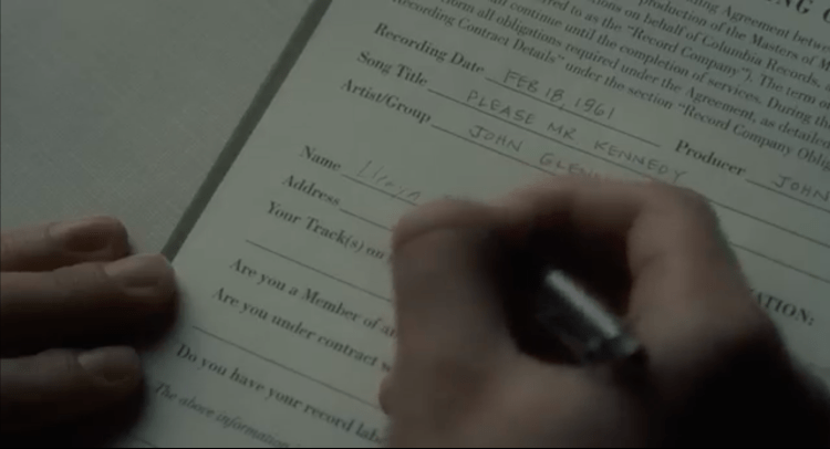 Not only that, in Llewyn’s life, as we see from the film, he did not have his own place to stay, so he always sleeps at his friends’ couch, and when it comes to the scene that he signed the contract, that scene stopped for a second when the camera captured the word “address” which could be the implied message that conveyed to the audience.