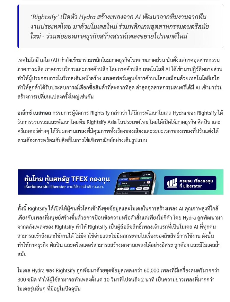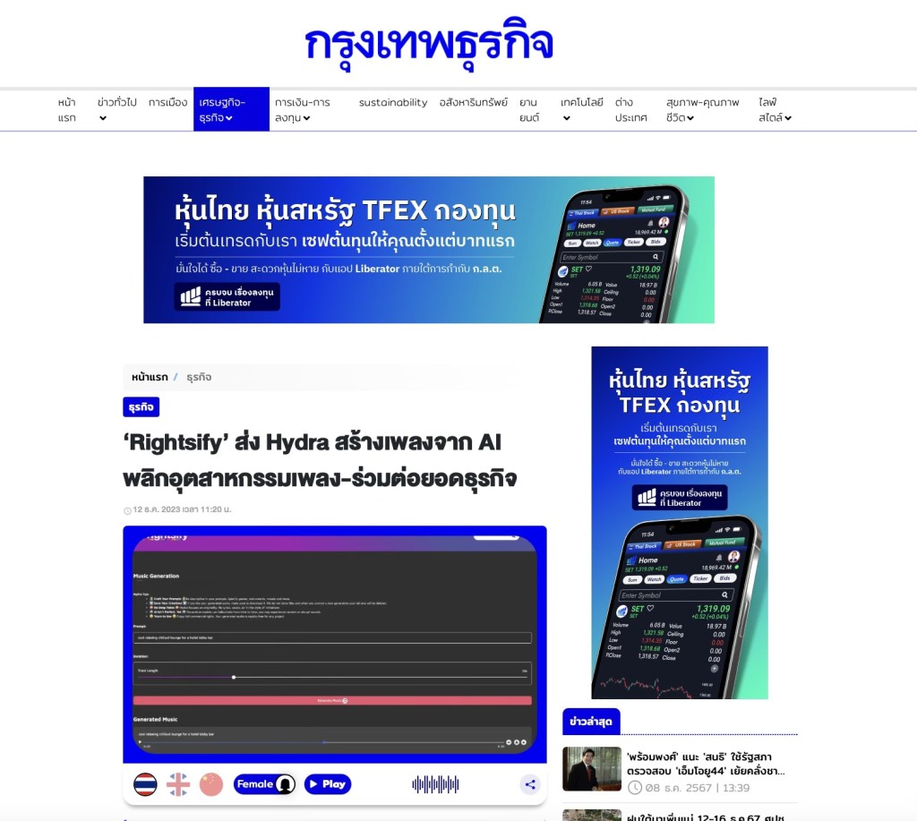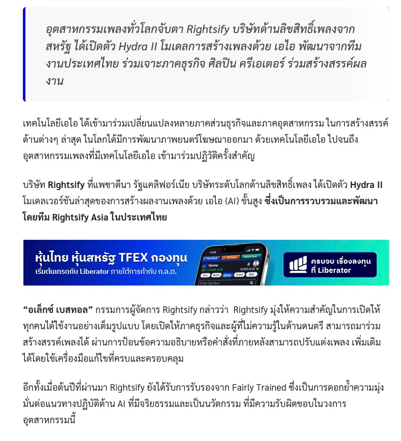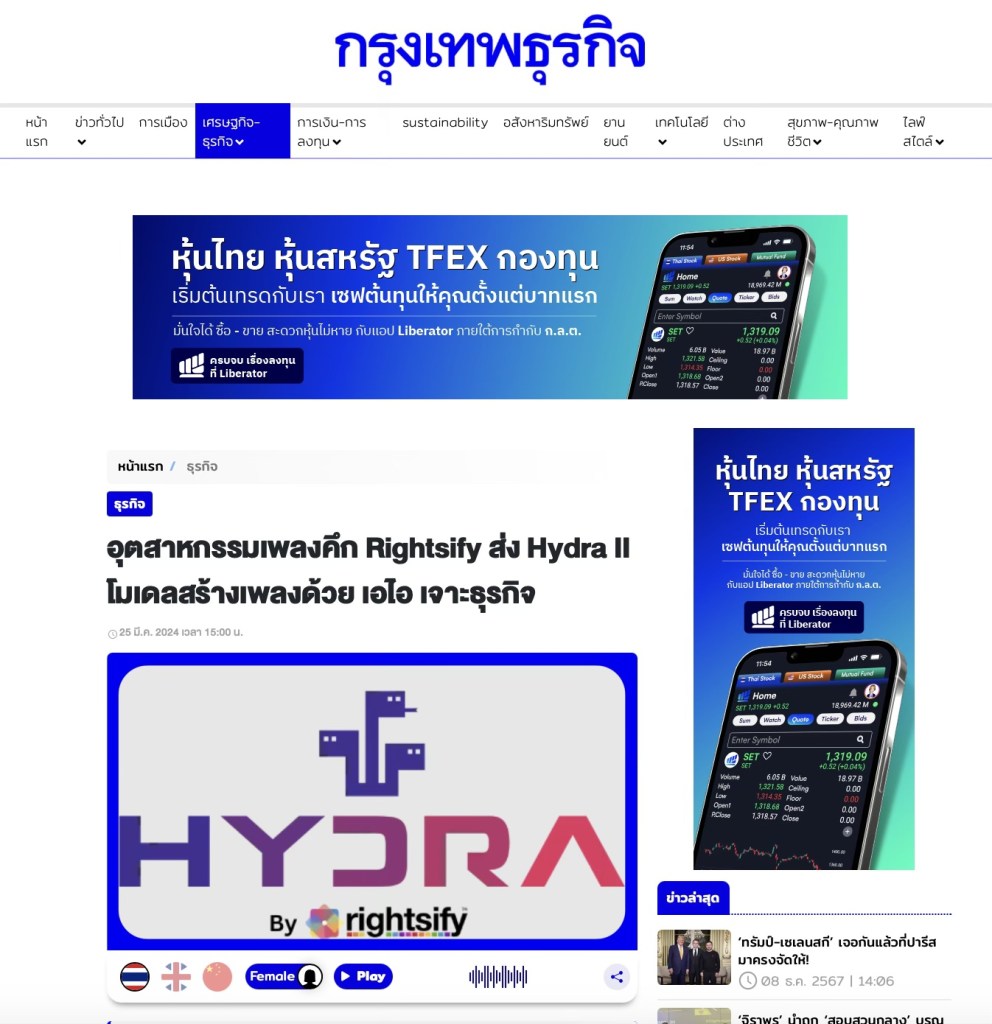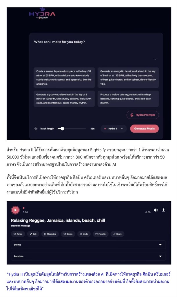 ‘Rightsify’ ส่ง Hydra สร้างเพลงจาก AI พลิกอุตสาหกรรมเพลง-ร่วมต่อยอดธุรกิจ